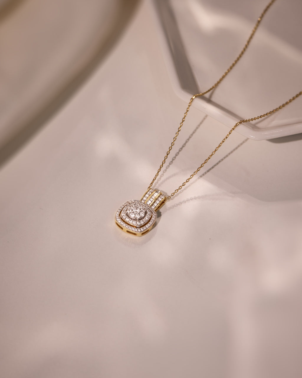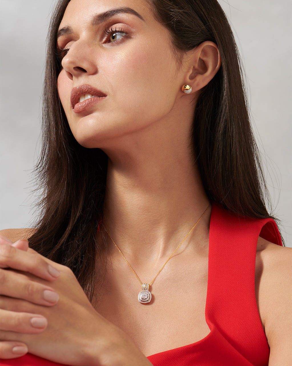 A modern classic, The Halo Grace Diamond Necklace brings together symmetry and sparkle in a pendant that’s refined, radiant, and endlessly wearable.