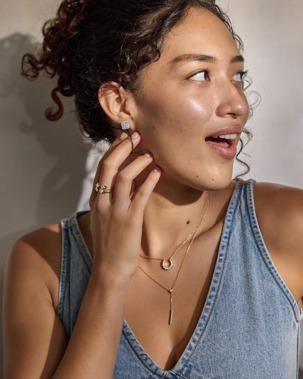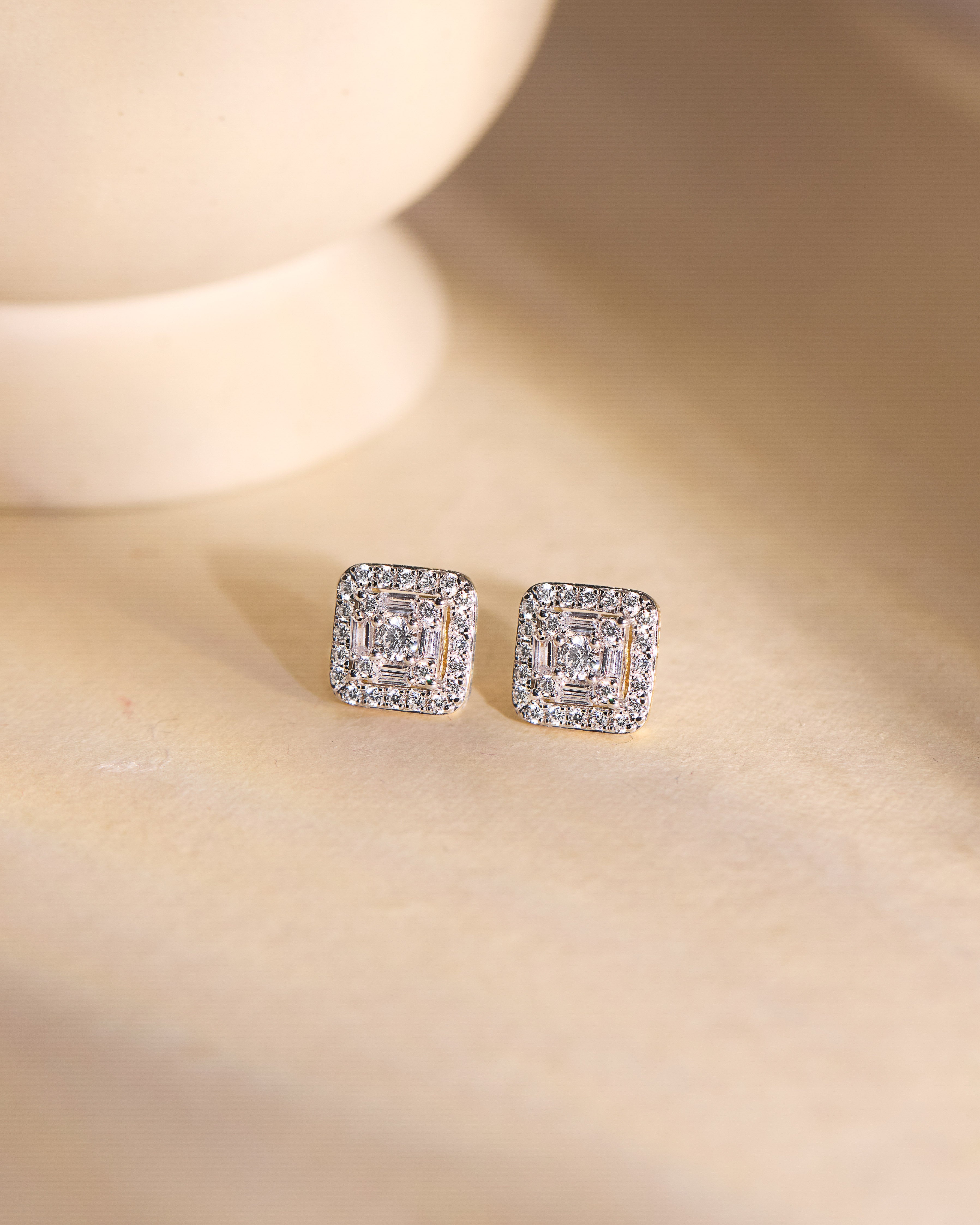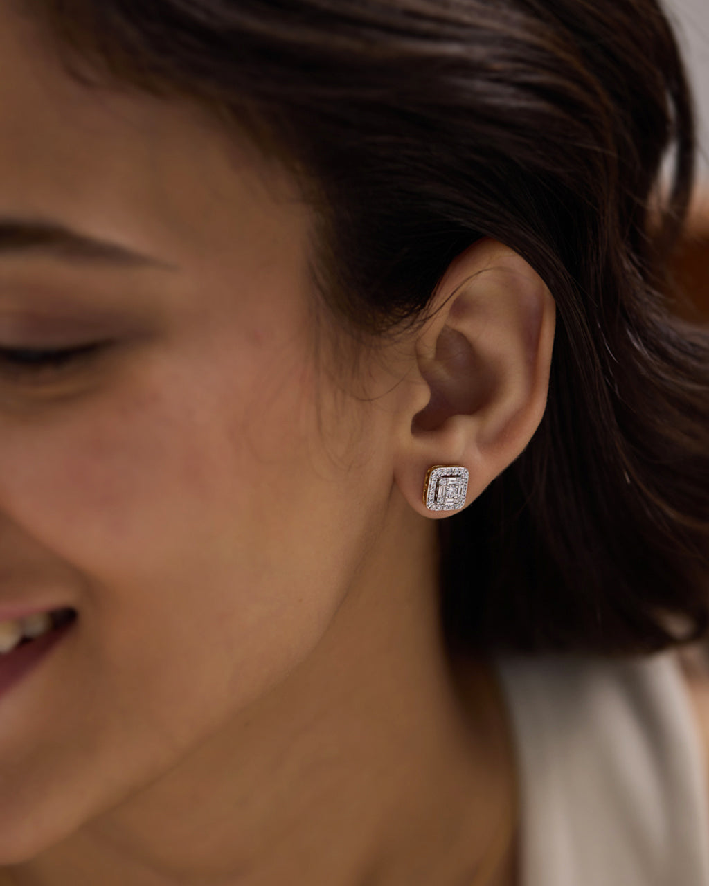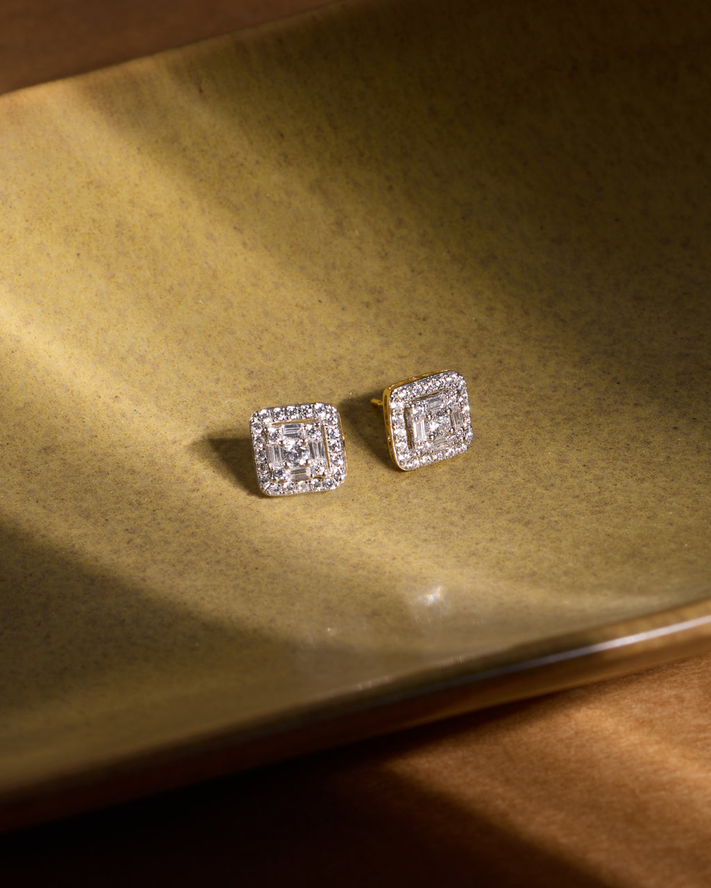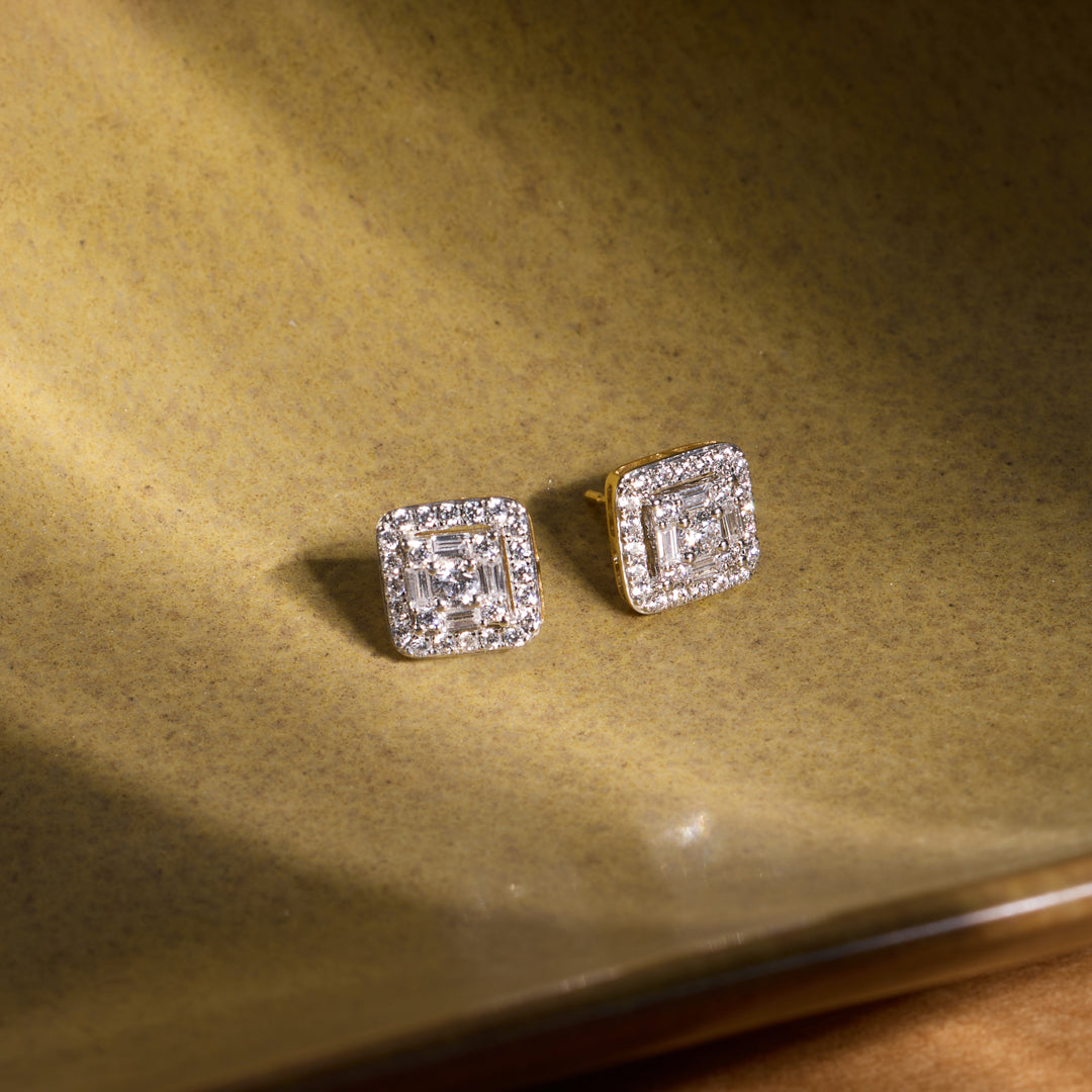 Light up your everyday with the Halo Grid Diamond Earrings in polished 14kt Gold Vermeil. Designed with a classic grid of shimmering diamonds, these elegant studs add refined brilliance to any look.