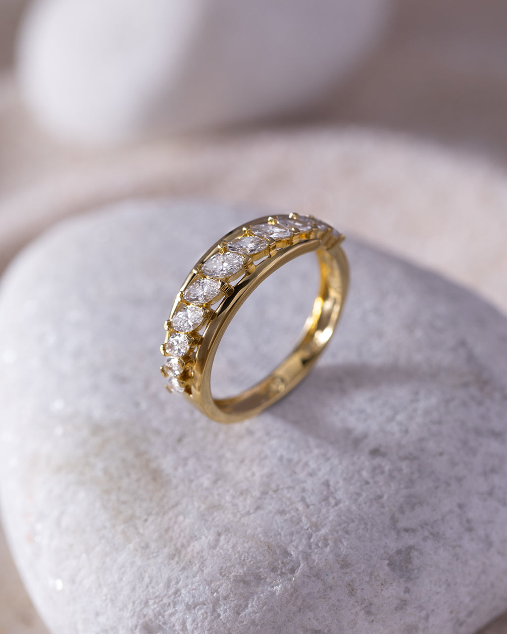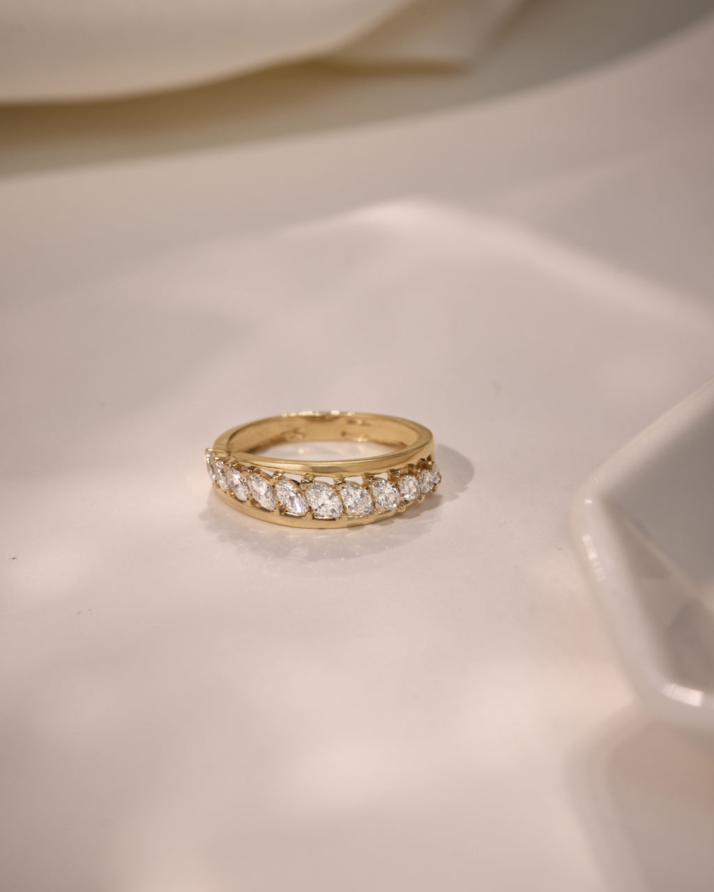 The Legacy Diamond Ring in 14kt Gold Vermeil features a bold, structured band set with brilliant diamonds—crafted to hold presence, power, and lasting shine.