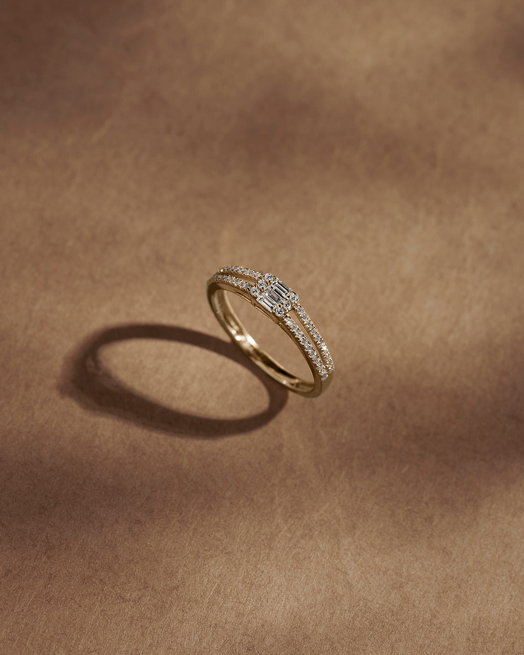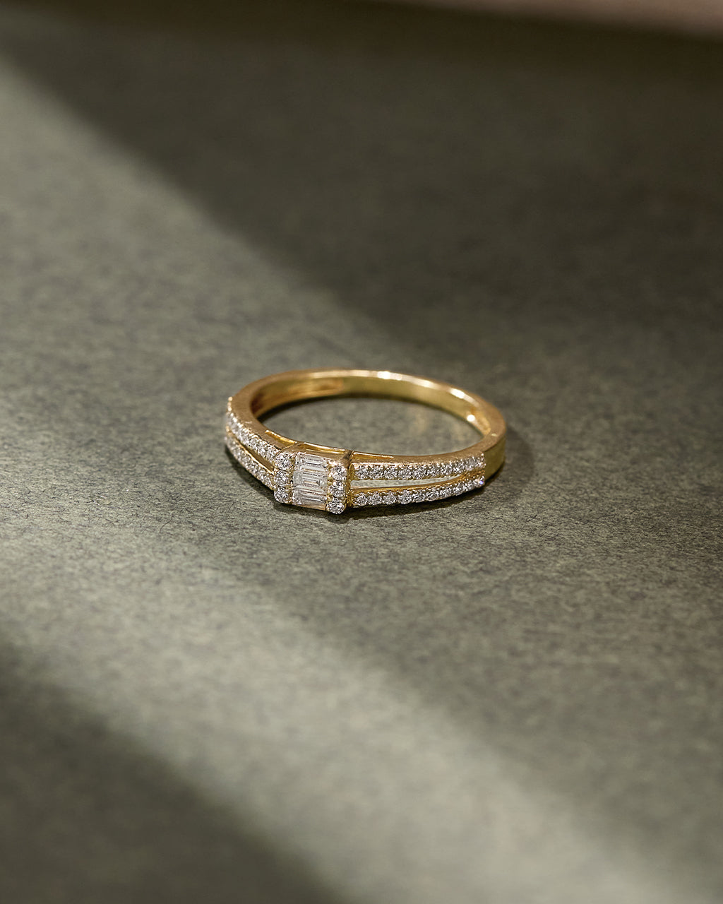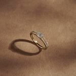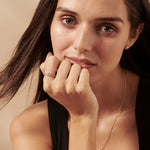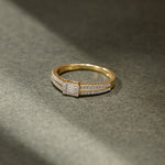 The Minimal Art Deco Diamond Ring pairs a precision-set baguette diamond with a halo of brilliant pavé accents. Crafted in 14kt gold vermeil, it’s an effortless blend of vintage geometry and modern minimalism, perfect for adding quiet elegance to your everyday or evening style.