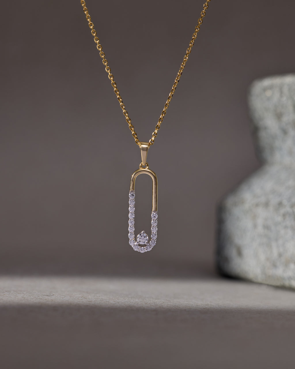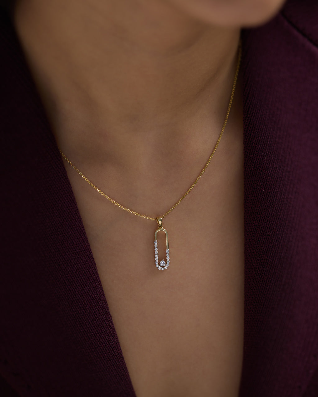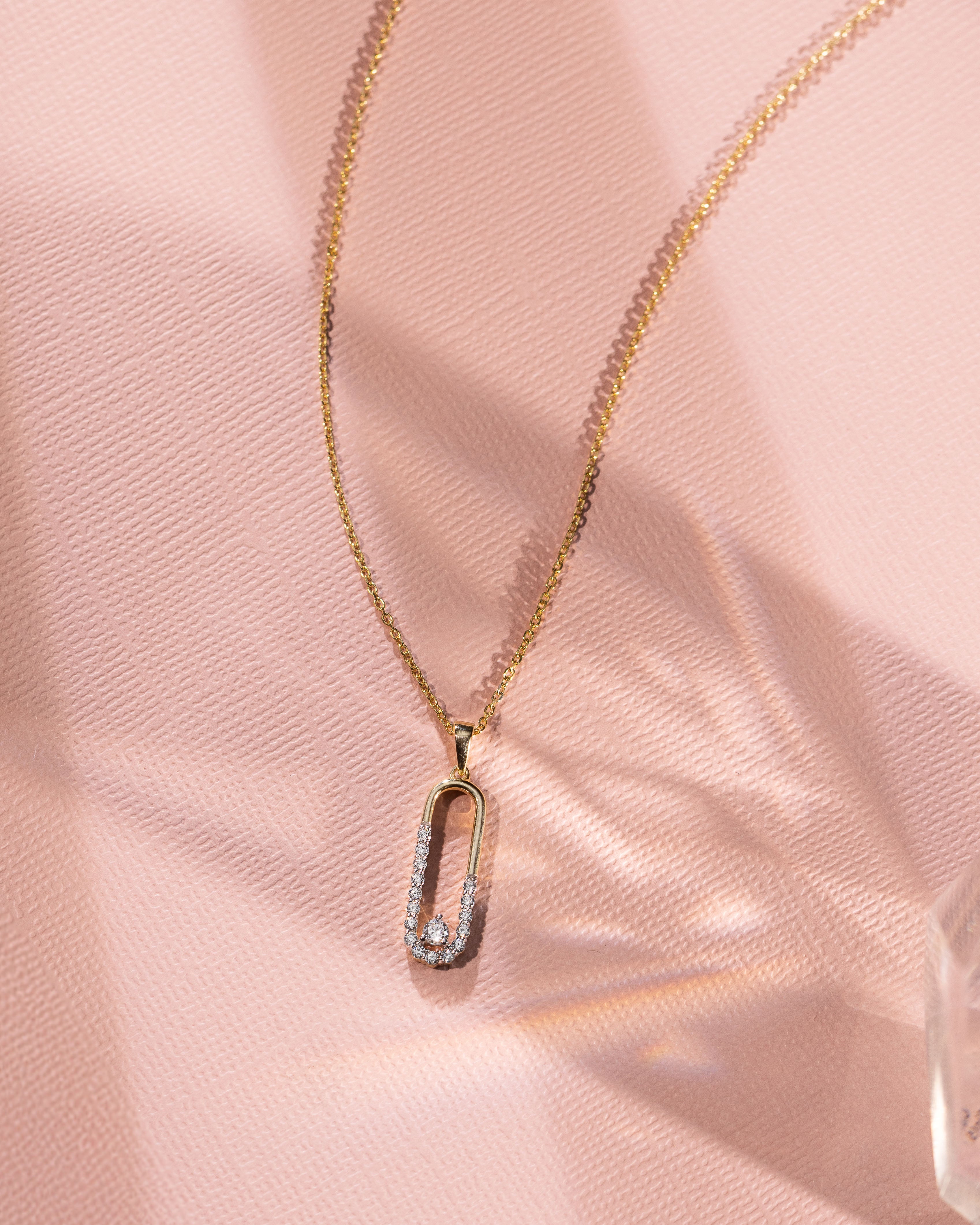 Clean, sleek, and made to shine—the Minimal Paperclip Diamond Necklace in polished 14kt Gold Vermeil features a streamlined paperclip design accented with subtle diamonds, bringing effortless edge to your everyday style.