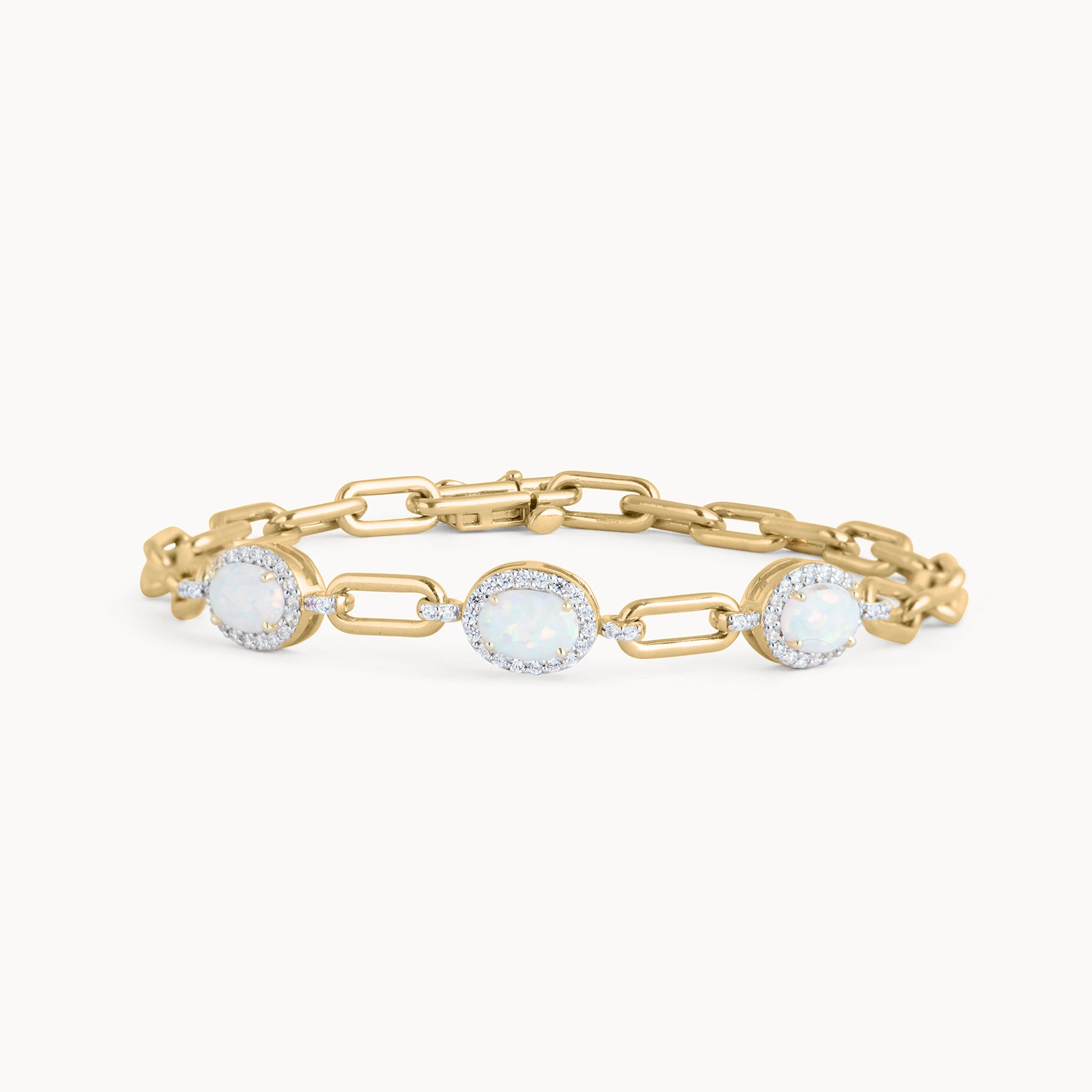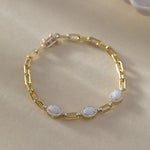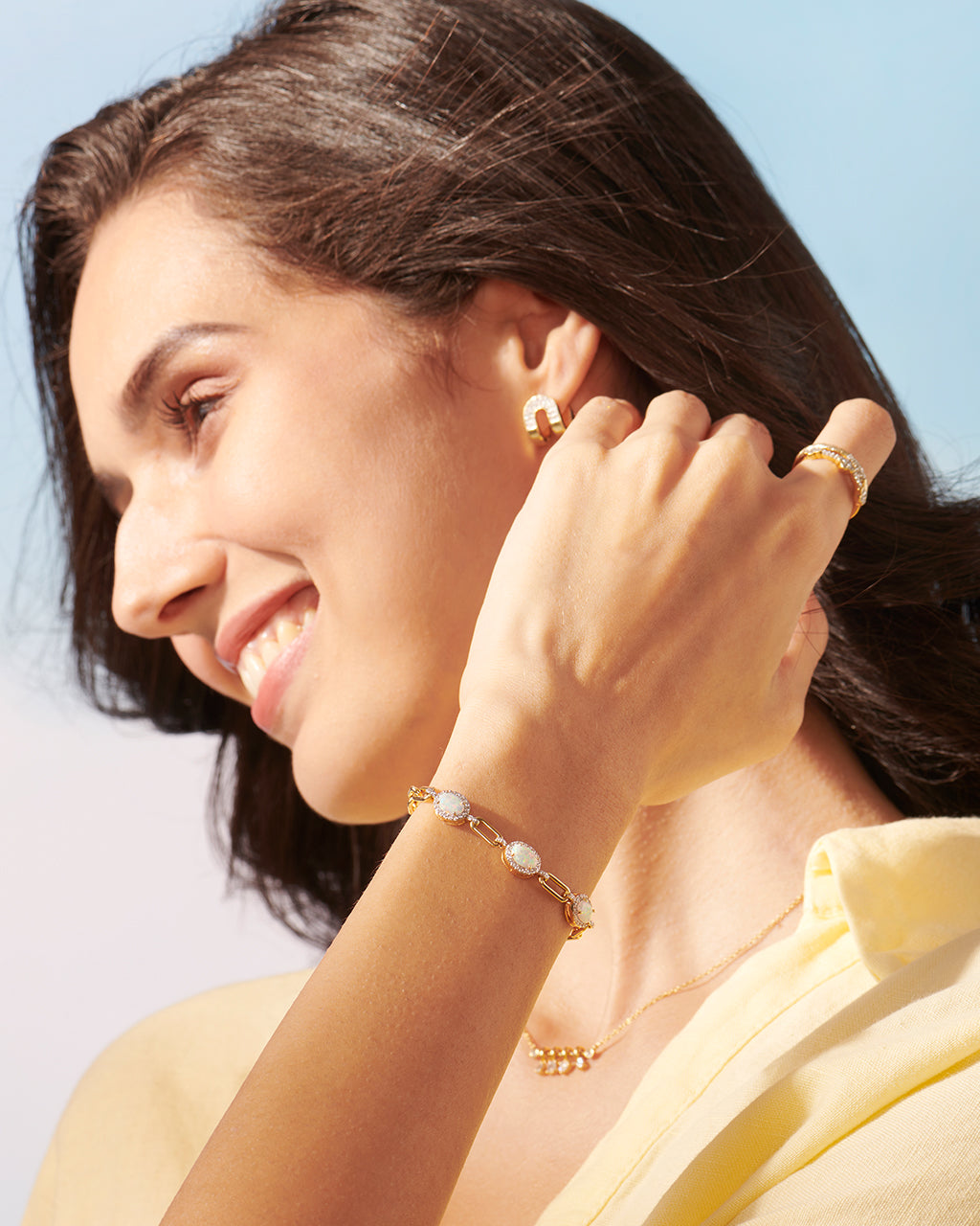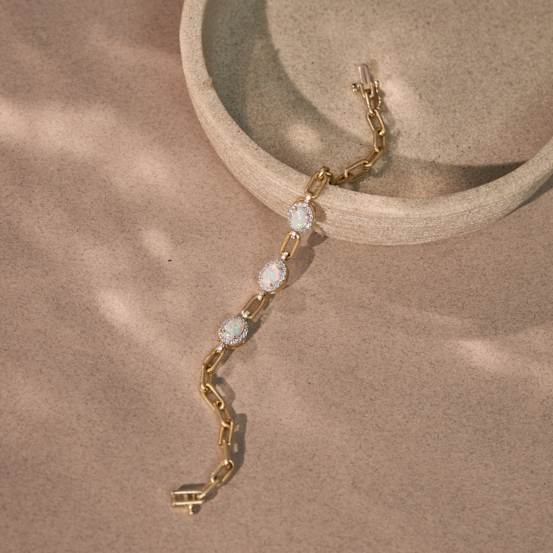 A hint of color, a lot of style—the Opal Paperclip Link Bracelet in polished 14kt Gold Vermeil is a subtle standout, pairing soft iridescence with bold lines.