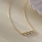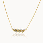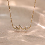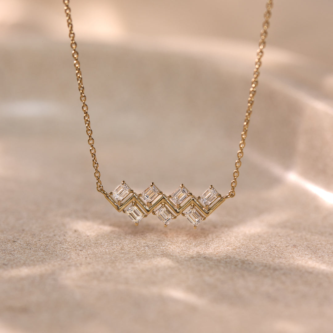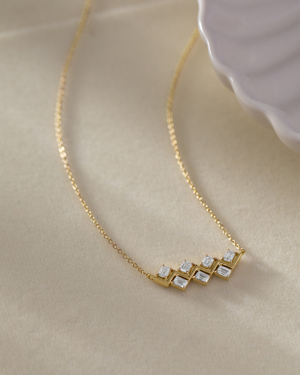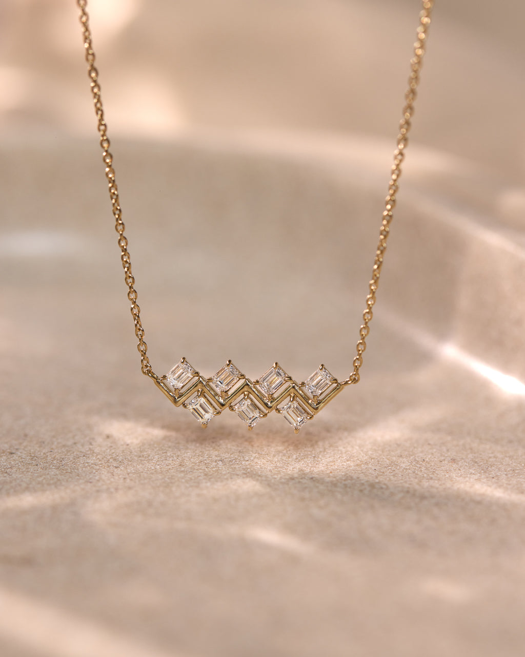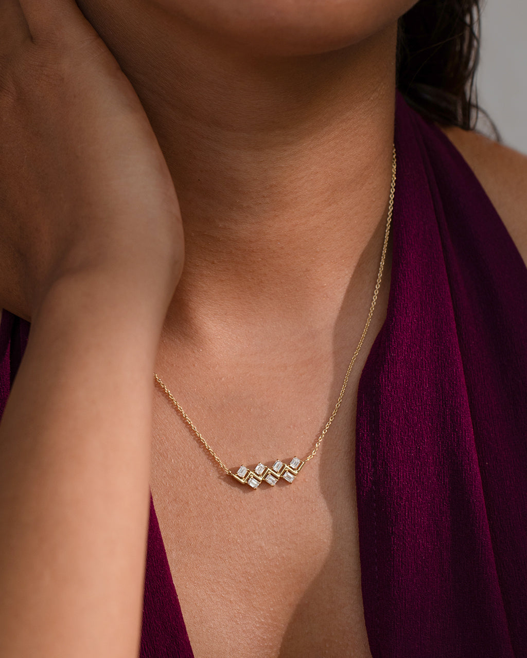 With a crisp gold bar set edge to edge in diamonds, the Radiant Diamond Bar Necklace offers just the right amount of structure and sparkle.