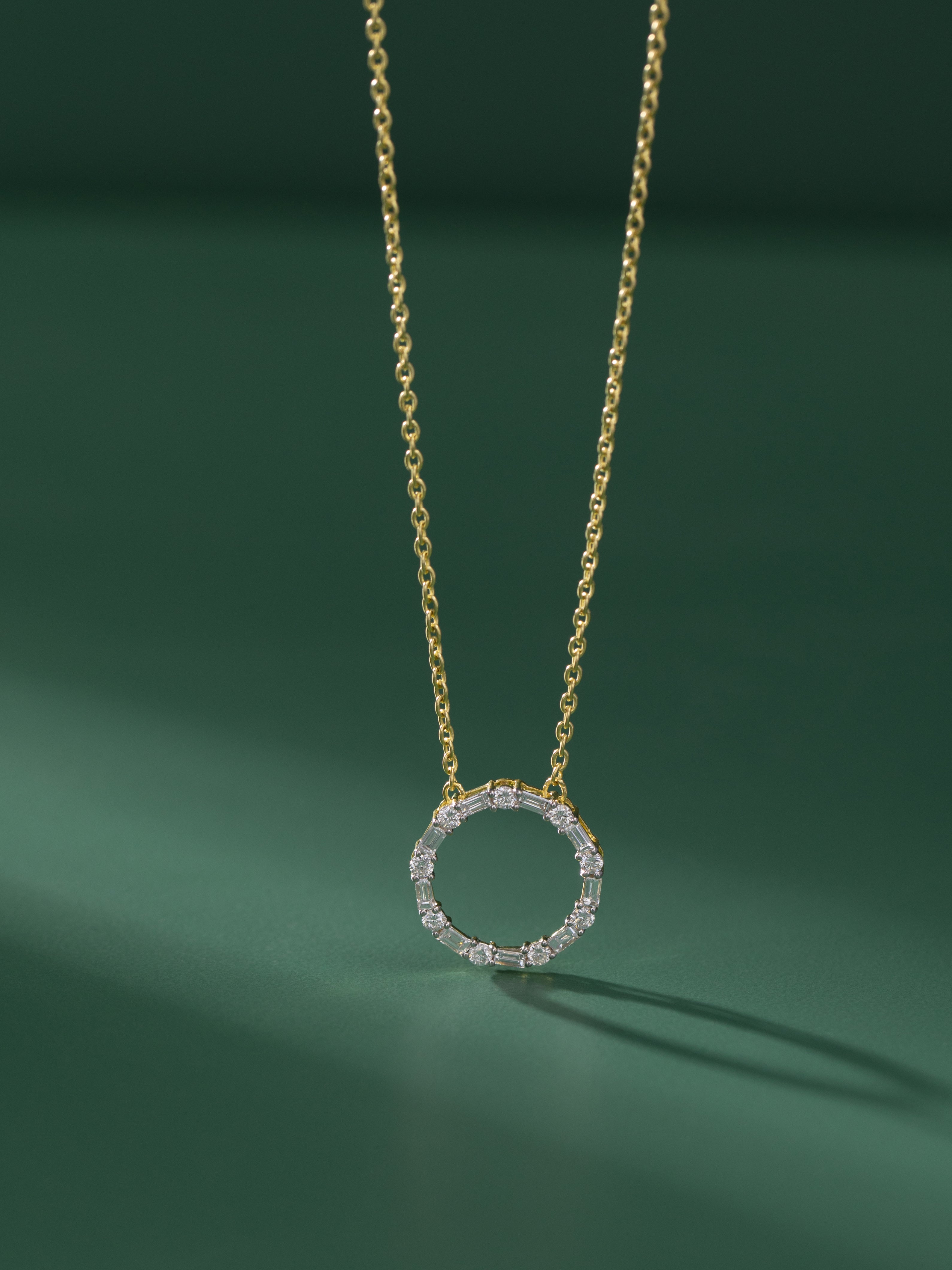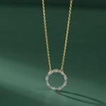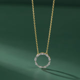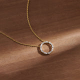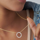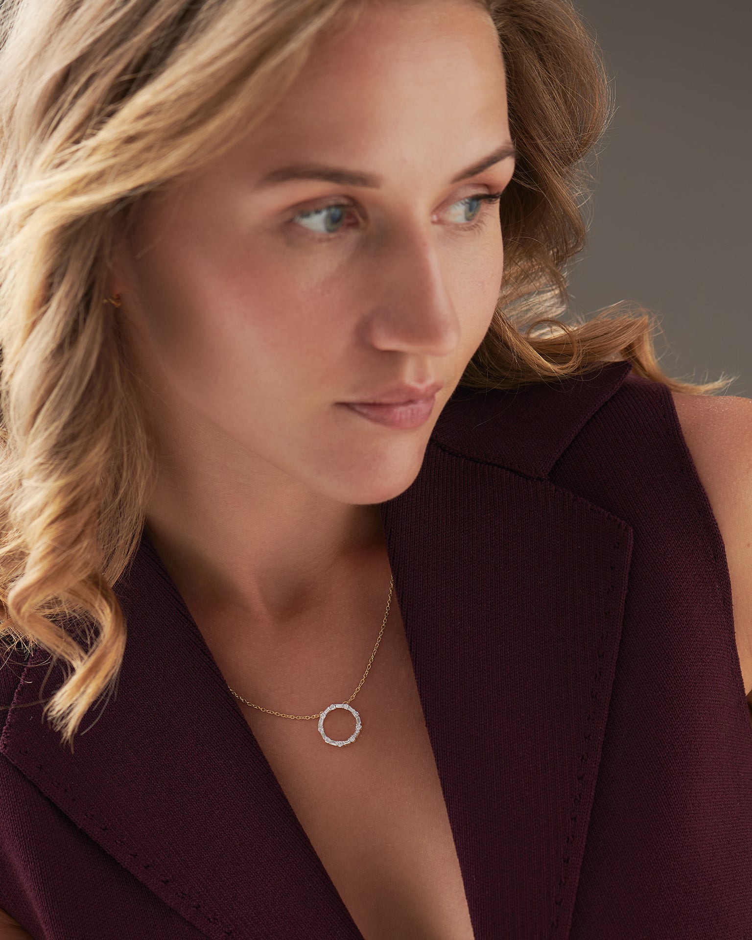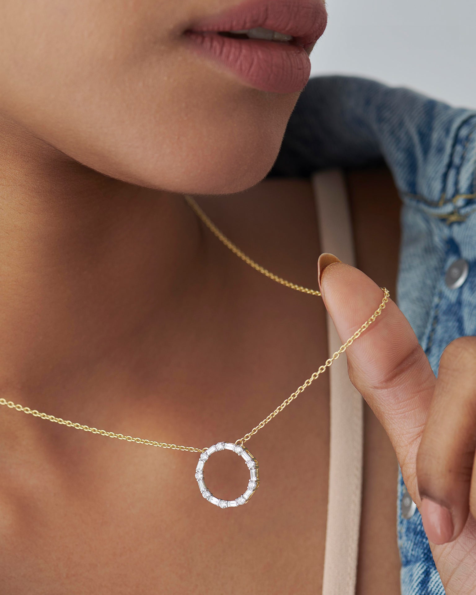 This 14kt gold vermeil necklace features a luminous 0.70 ct diamond halo—refined, radiant, and designed to elevate your everyday with effortless grace.