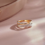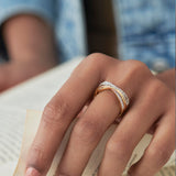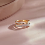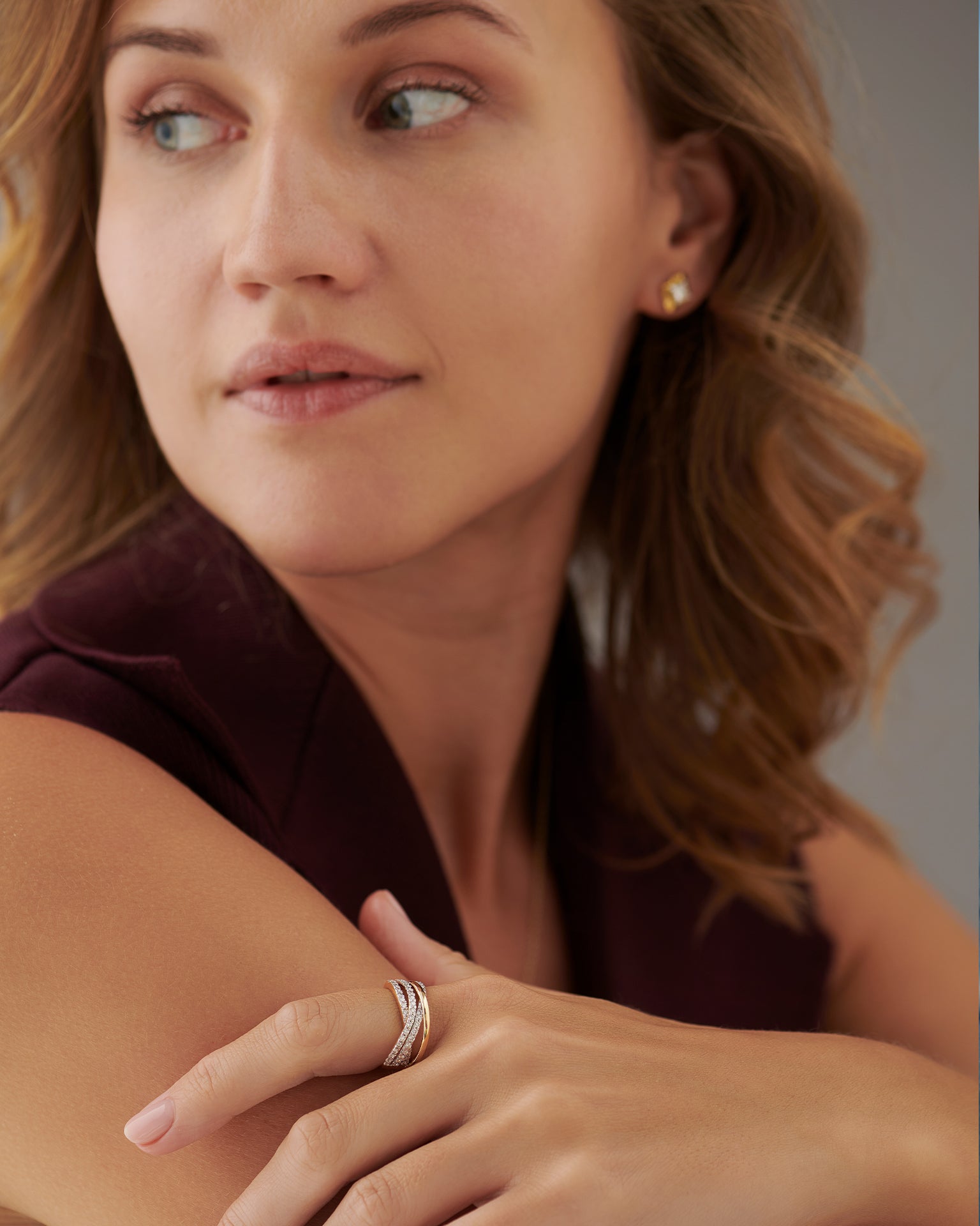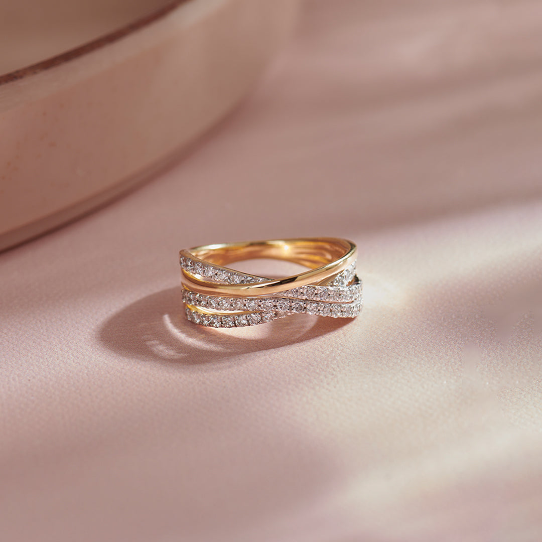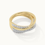 With 0.68 ct of diamonds and softly flowing lines, this 14kt gold vermeil crossover band blends bold structure with calm elegance—made to shine with quiet strength.