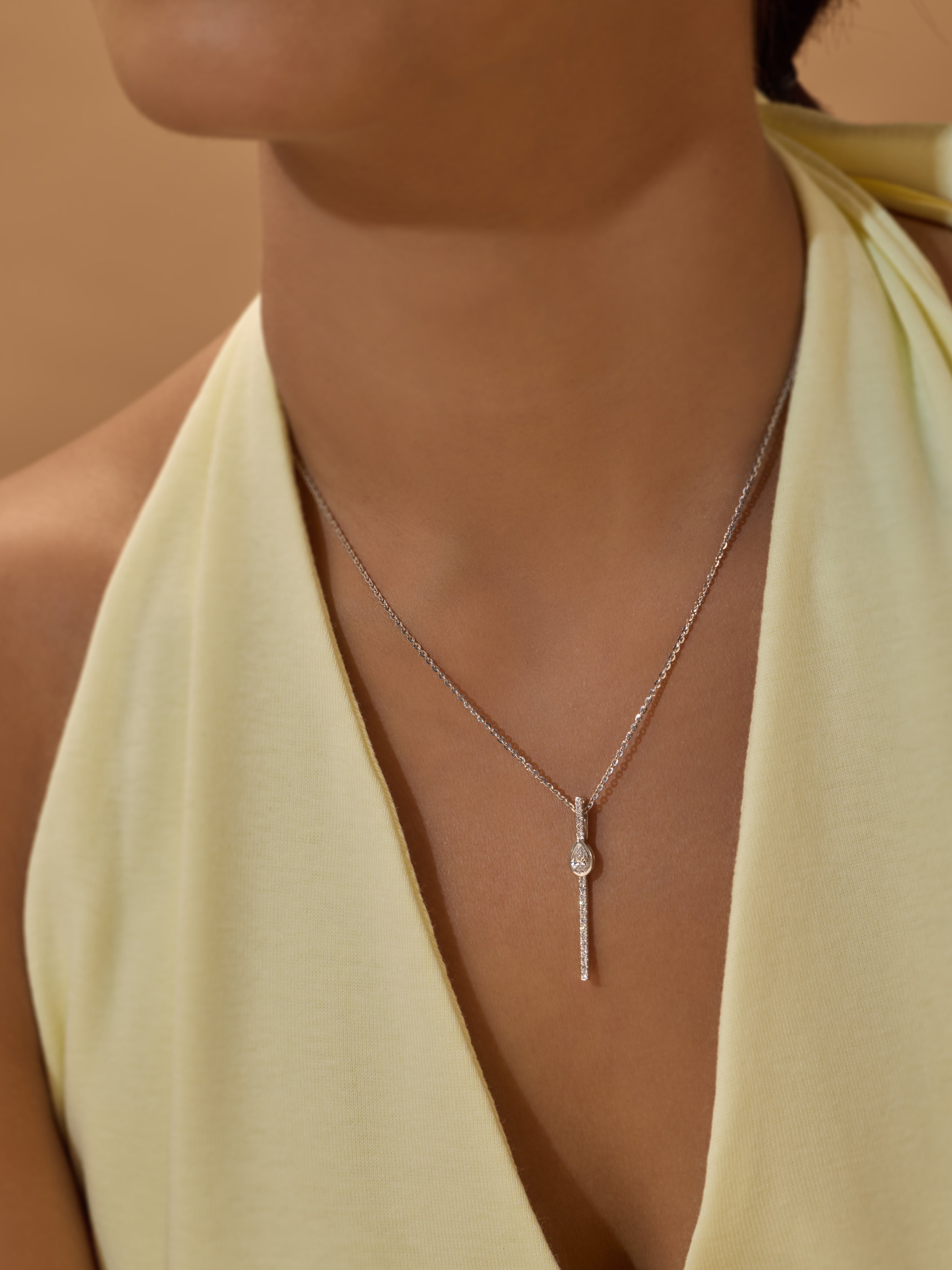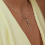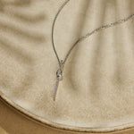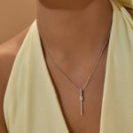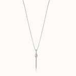 Modern lines, effortless glow—the Sleek Elongated Diamond Necklace in polished Sterling Silver features a slim, elongated pendant accented with shimmering diamonds, crafted to bring refined elegance to any look.