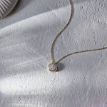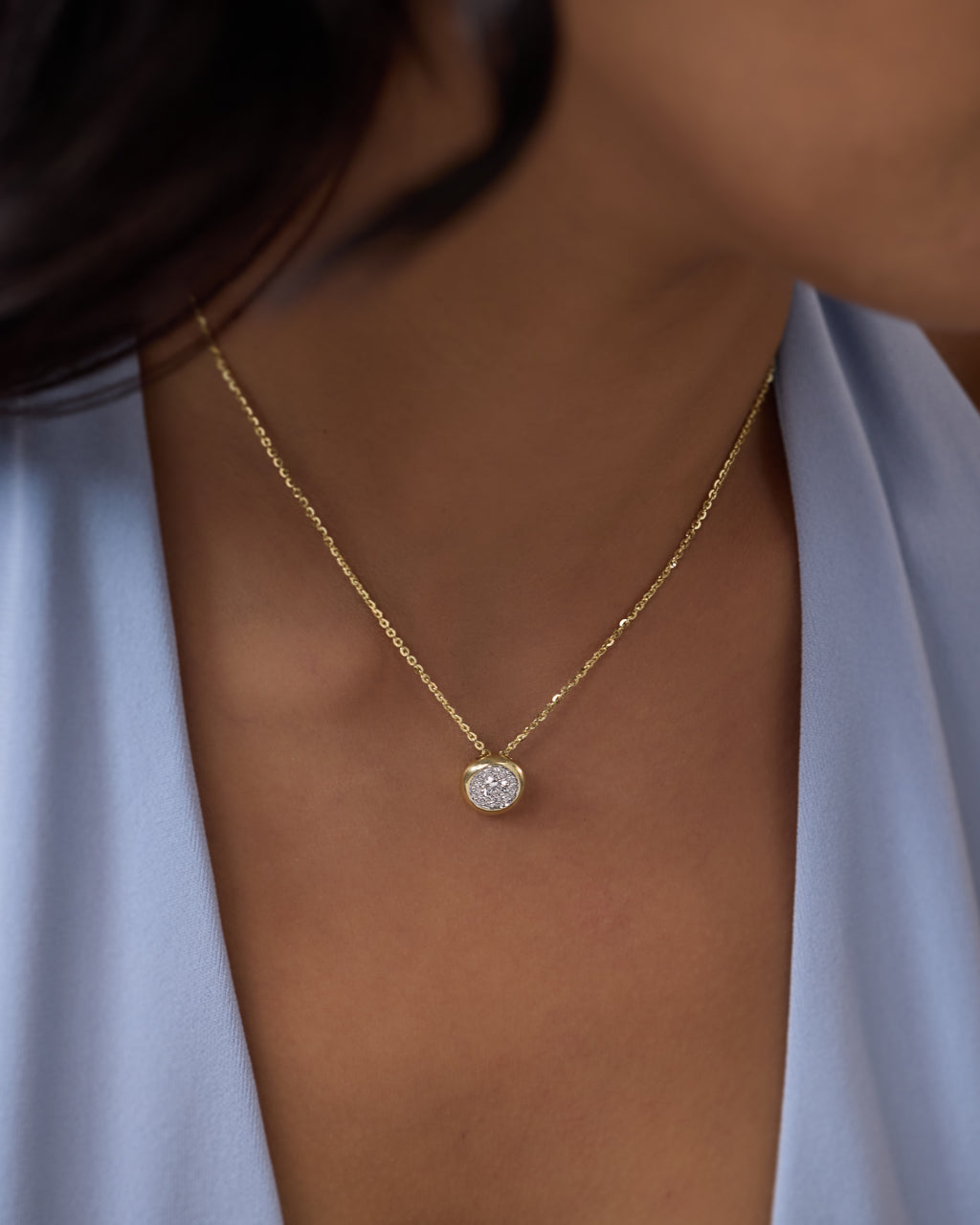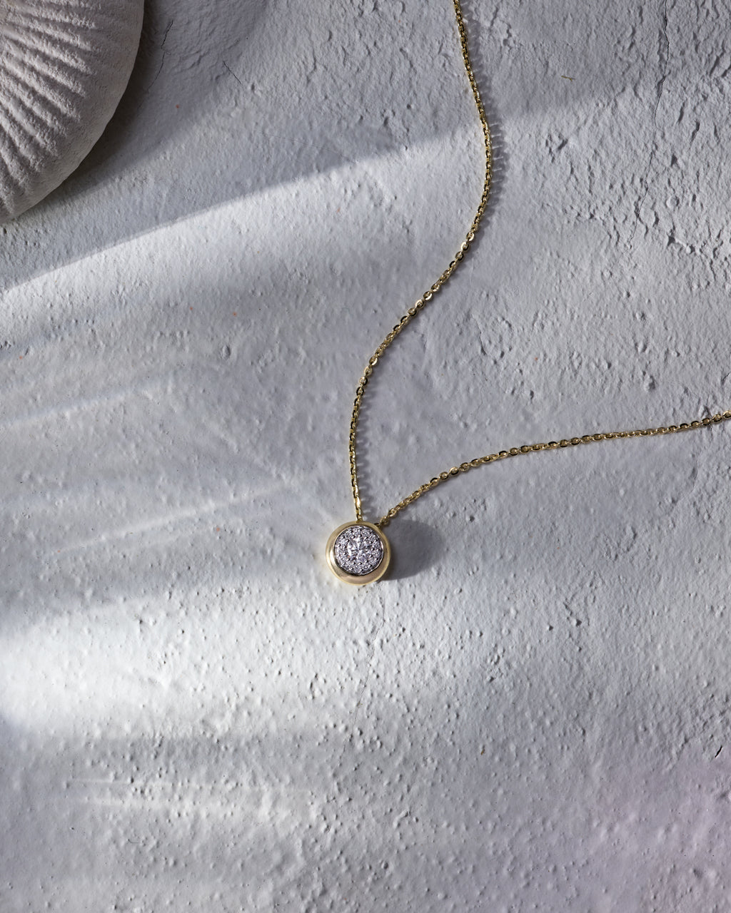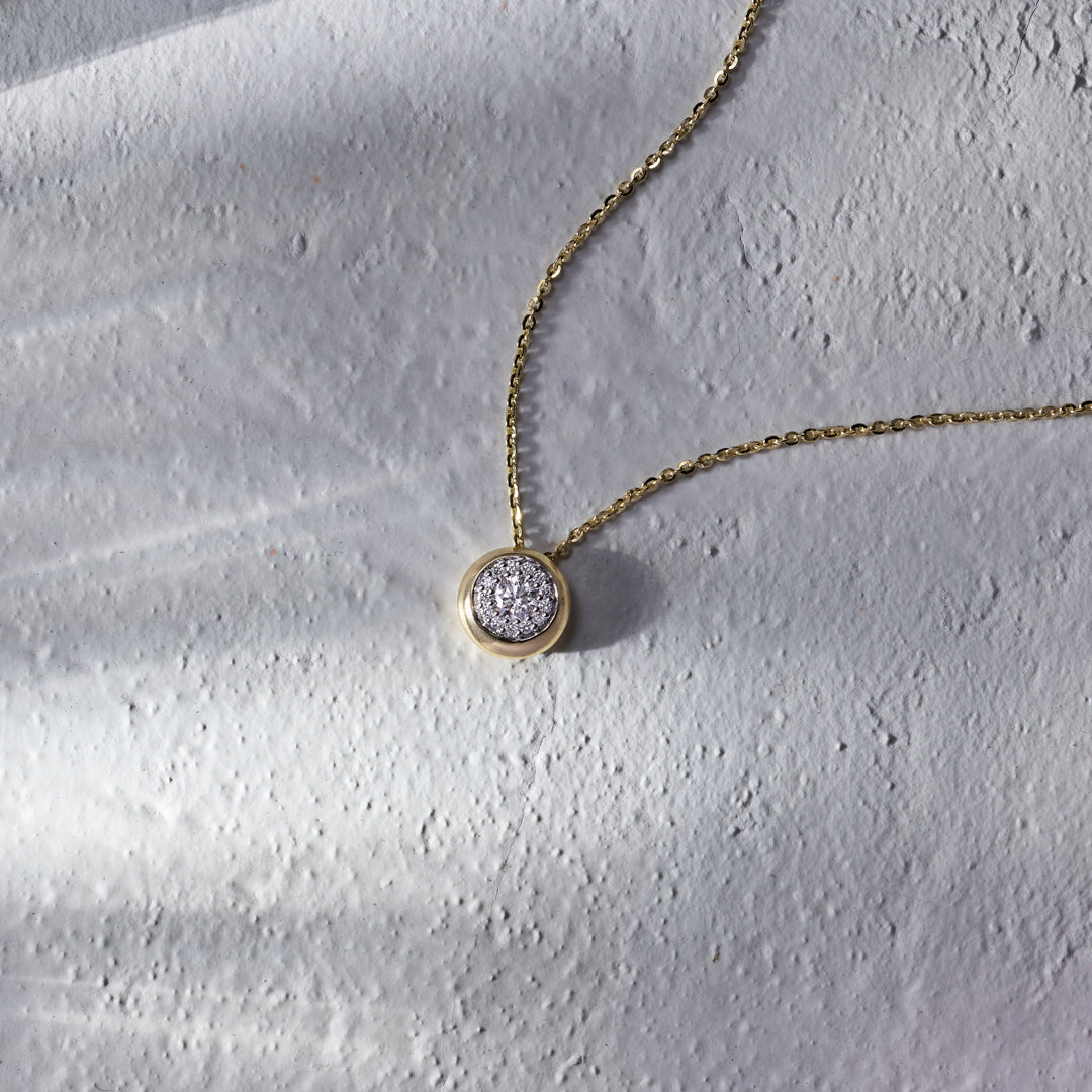Endlessly refined—the Solid Circle Round Diamond Necklace in polished 14kt Gold Vermeil features a smooth, bold circle pendant accented with round sparkling diamonds, crafted to bring quiet strength and brilliance to your everyday look.