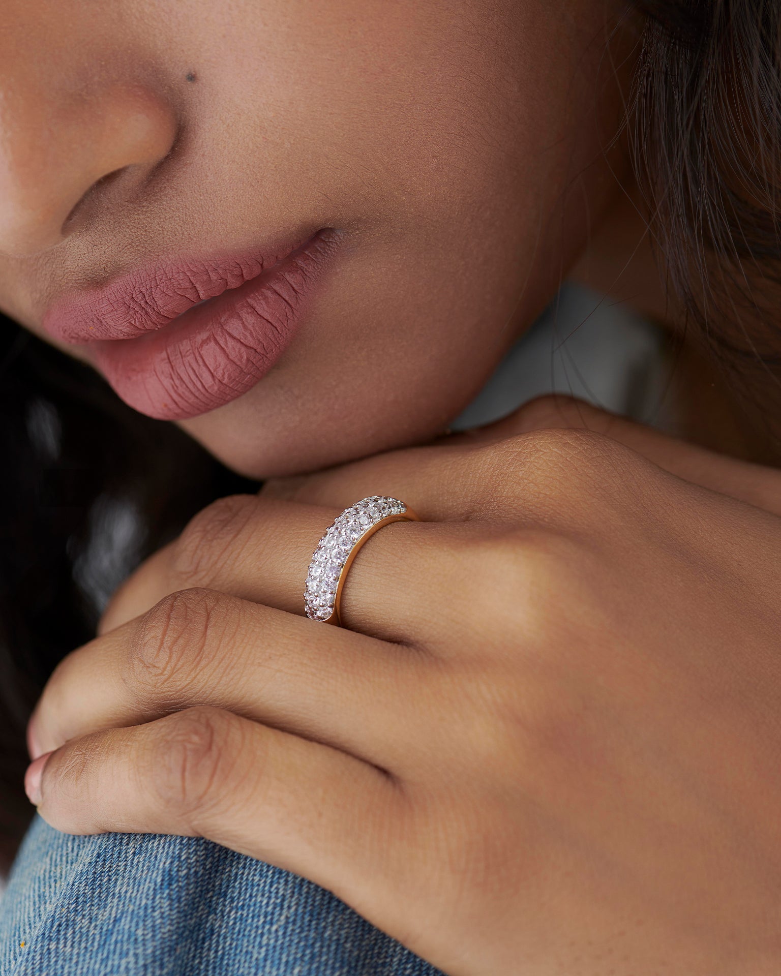 This 14kt gold vermeil half eternity band features 1.01 ct of tyre pavé-set diamonds—timeless design with a bold, modern twist.