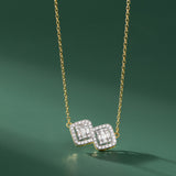 This 14kt gold vermeil necklace features twin diamond clusters totaling 0.70 ct—classic sparkle with a modern edge, perfect for everyday elegance or special moments.