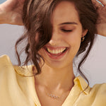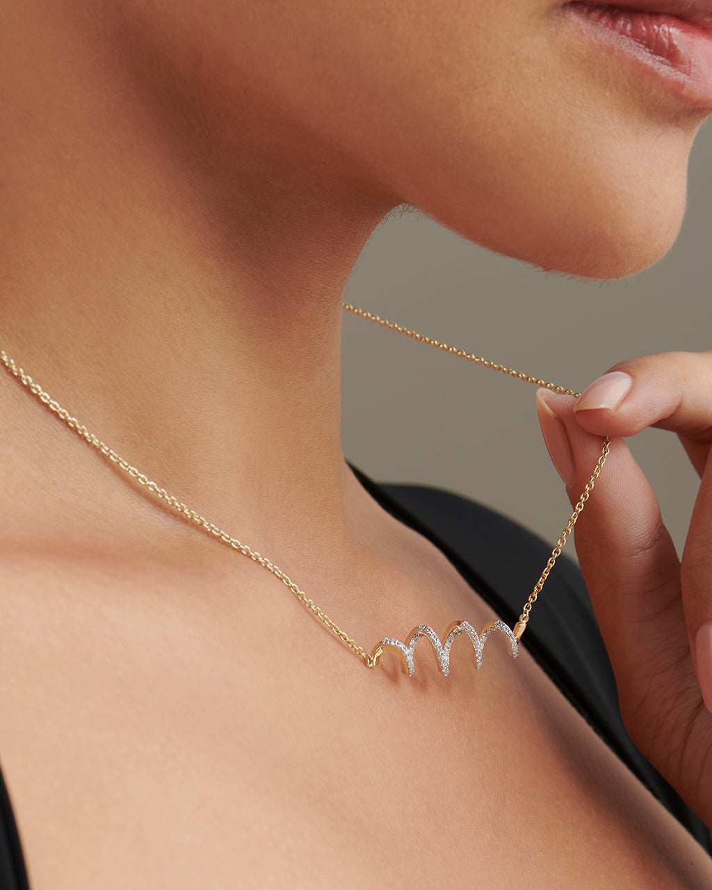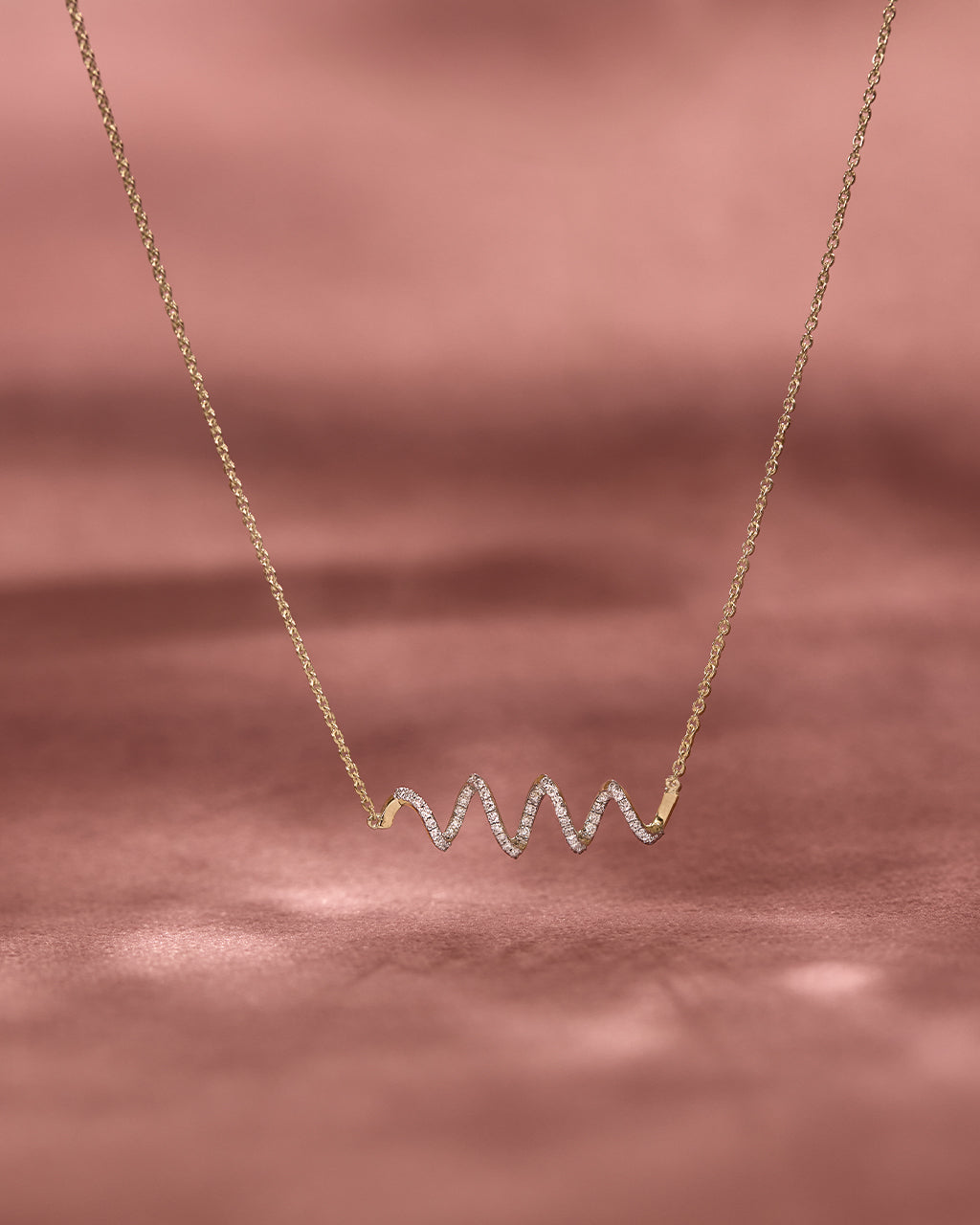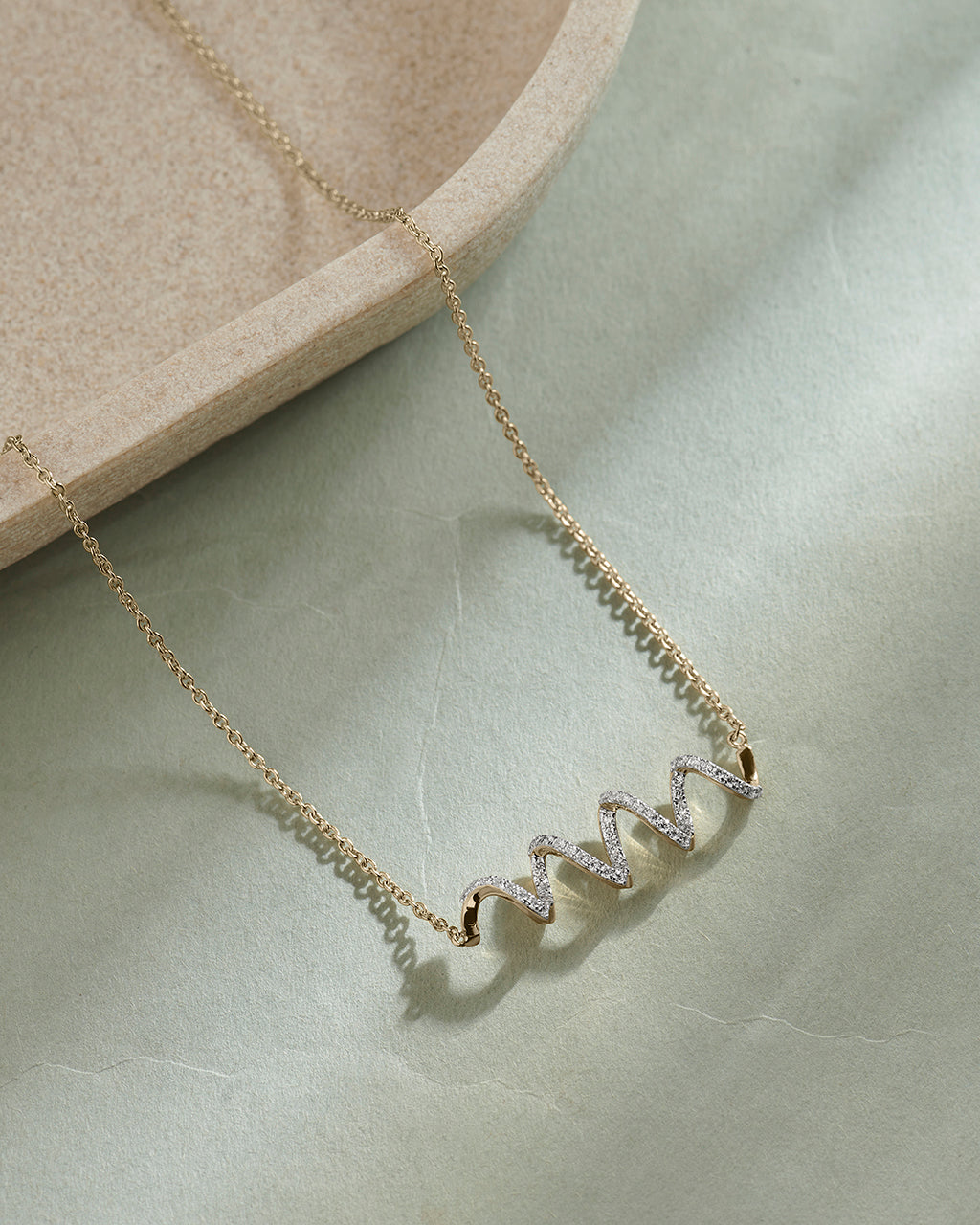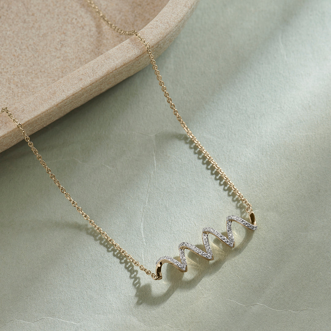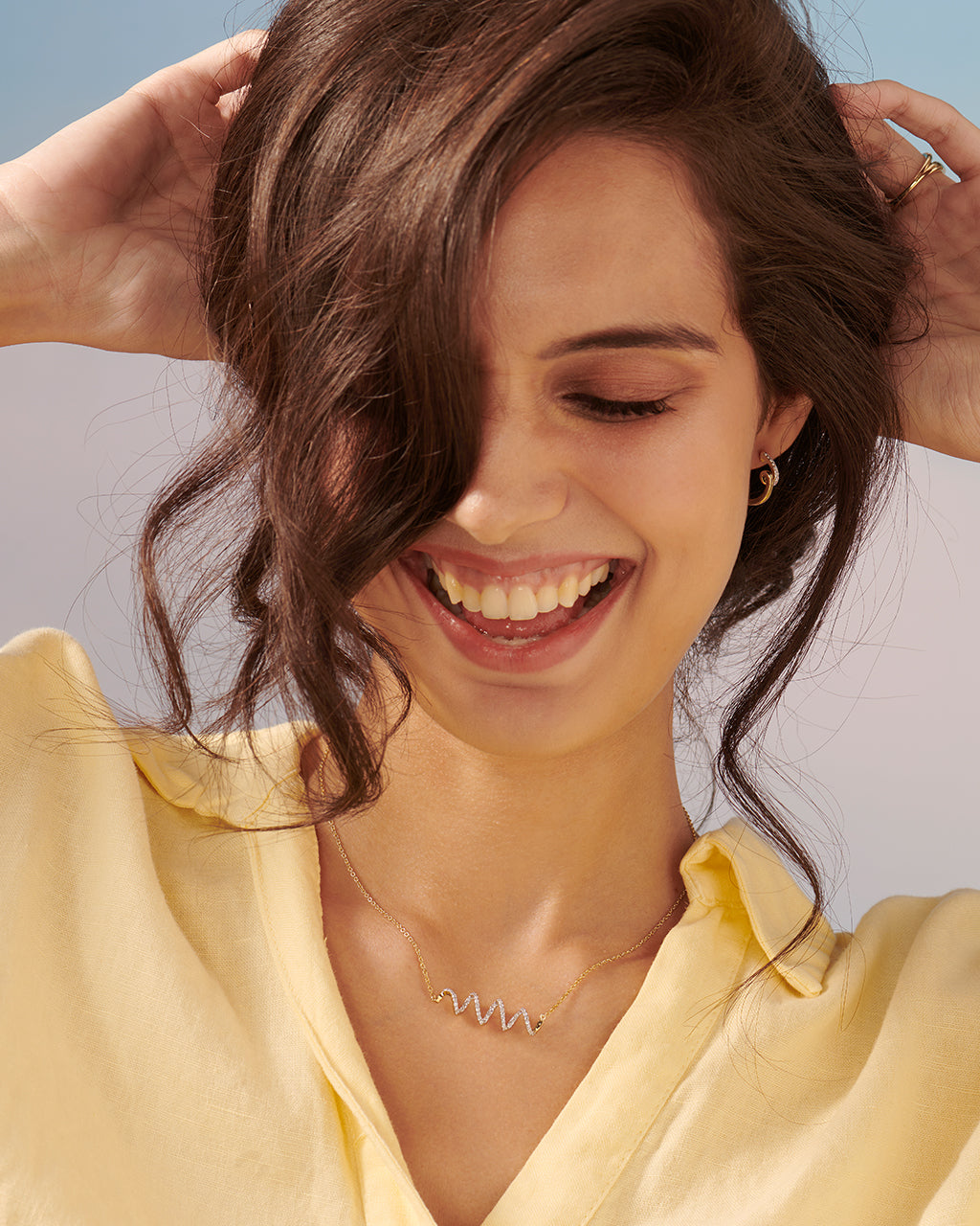 A slender bar takes a subtle turn, bringing a fresh dimension to the diamond detail. Set in 14kt gold vermeil, this necklace blends sophistication with a hint of play.
