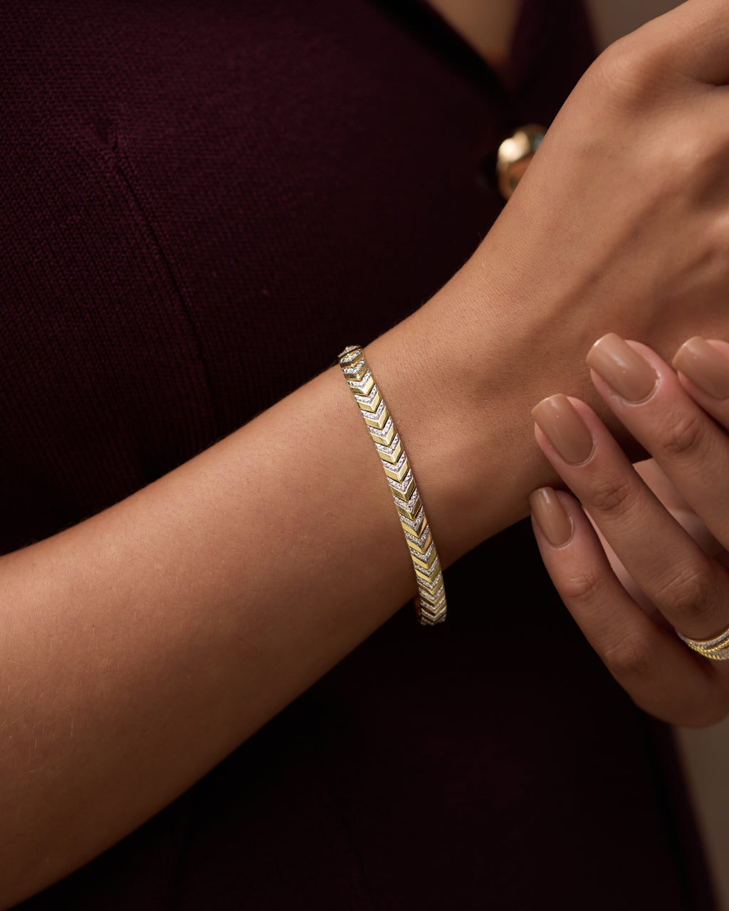 Own your shine with the Bold Horizon Diamond Bracelet in polished 14kt Gold Vermeil. Featuring a striking chain design accented with shimmering diamonds, this statement bracelet brings effortless power and polish to your everyday style.