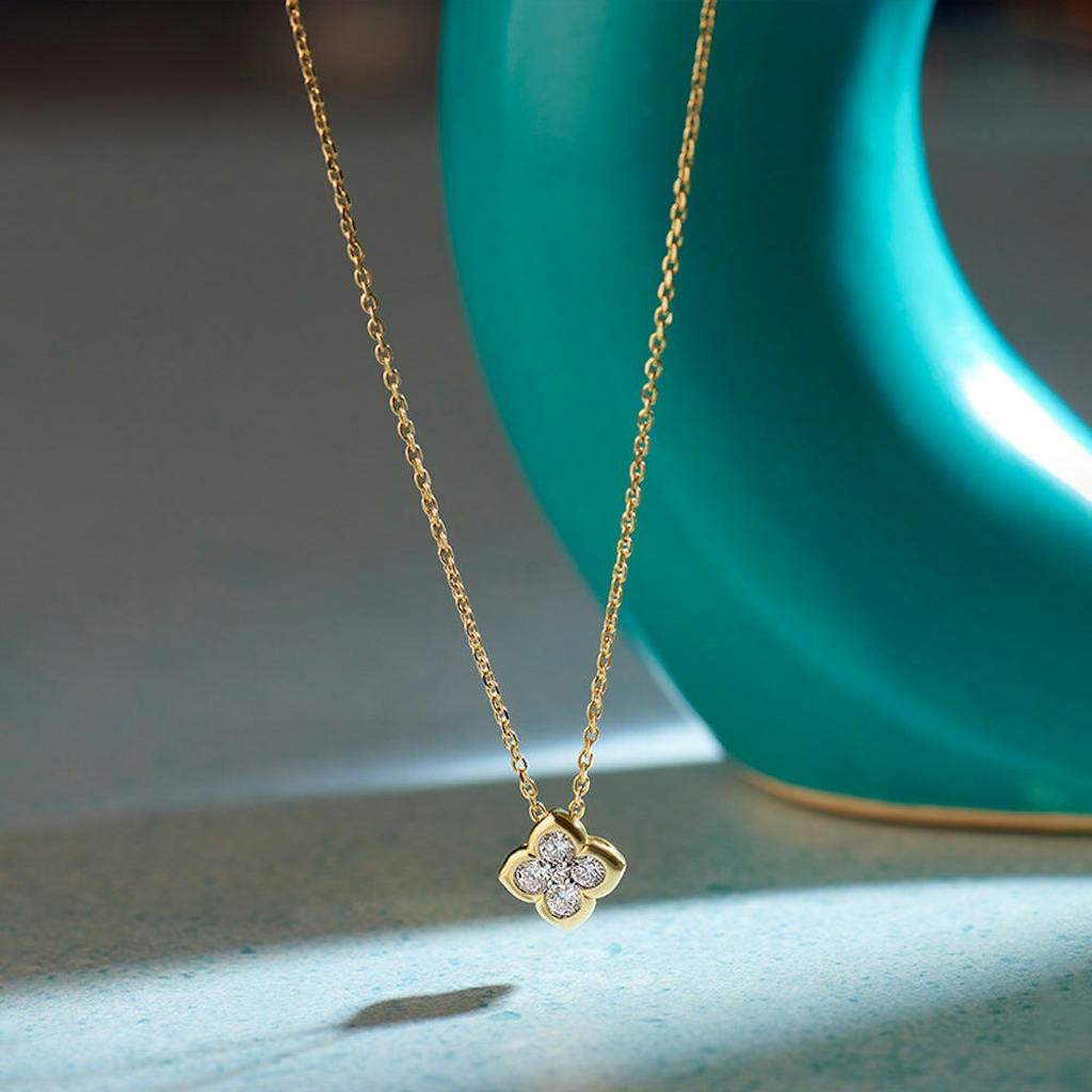 Elevate your everyday style with this nature-inspired Floral Cluster Diamond Necklace. This delicate beauty is perfect for adding a hint of elegance and for showcasing your unique sense of style.