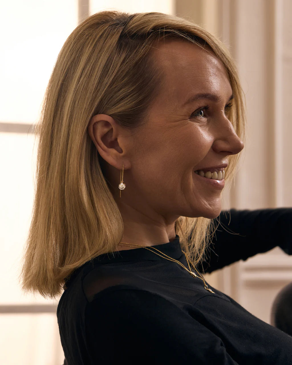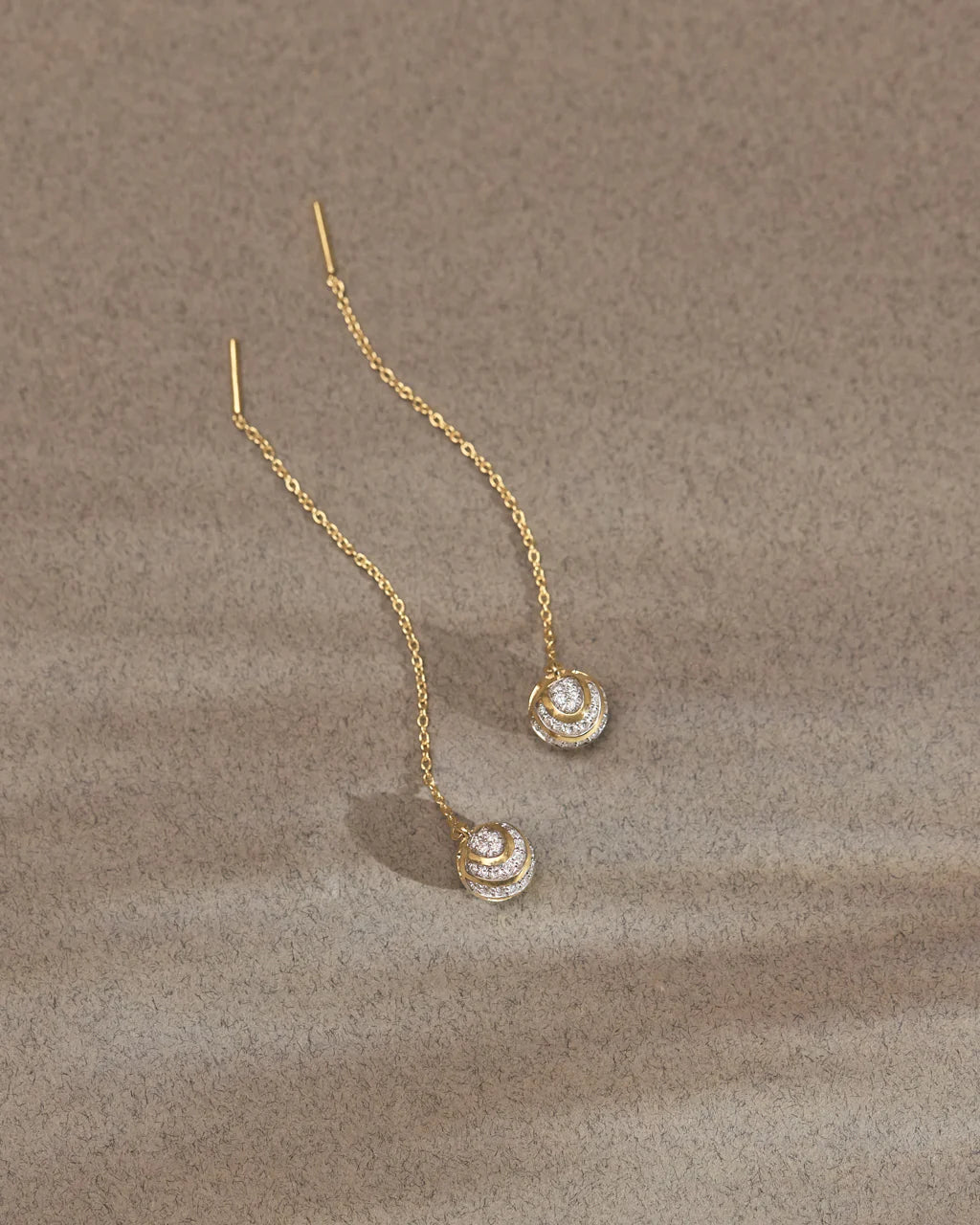 The Spherical Diamond Threaders feature a diamond-studded orb that catches the light from every angle, trailing from a fine gold chain. Effortless yet artful, they’re made for those who move through life with quiet allure.
